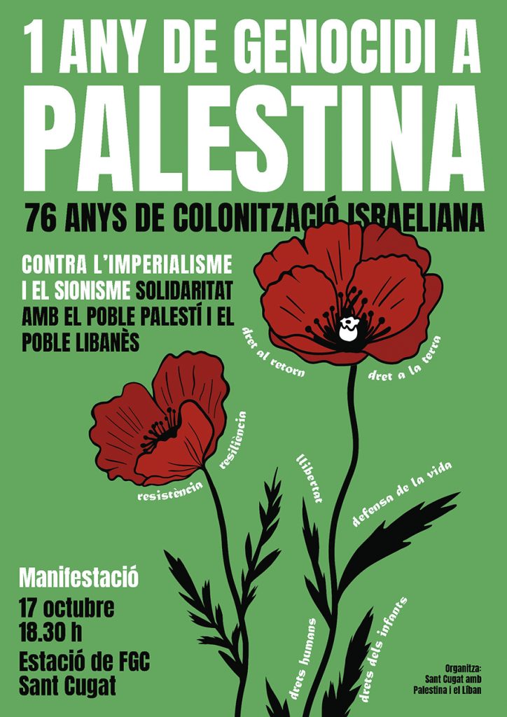 One year of genocide, 76 years of occupation. Poster for demo, using the flower poppy as symbol for Palestine